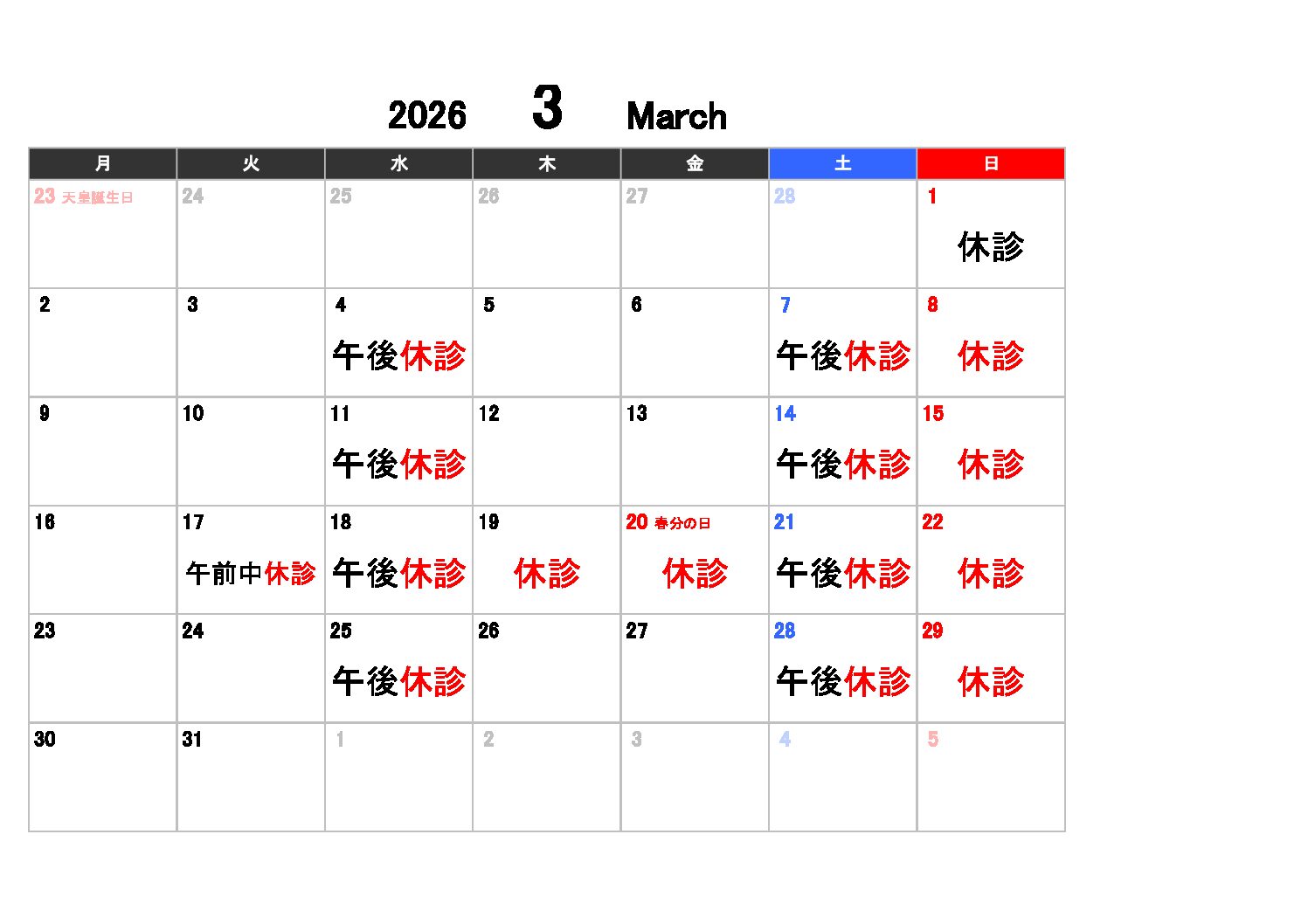 その他 水曜日午後、土曜日午後、日祝日は 休診 となっております。ご注意ください。