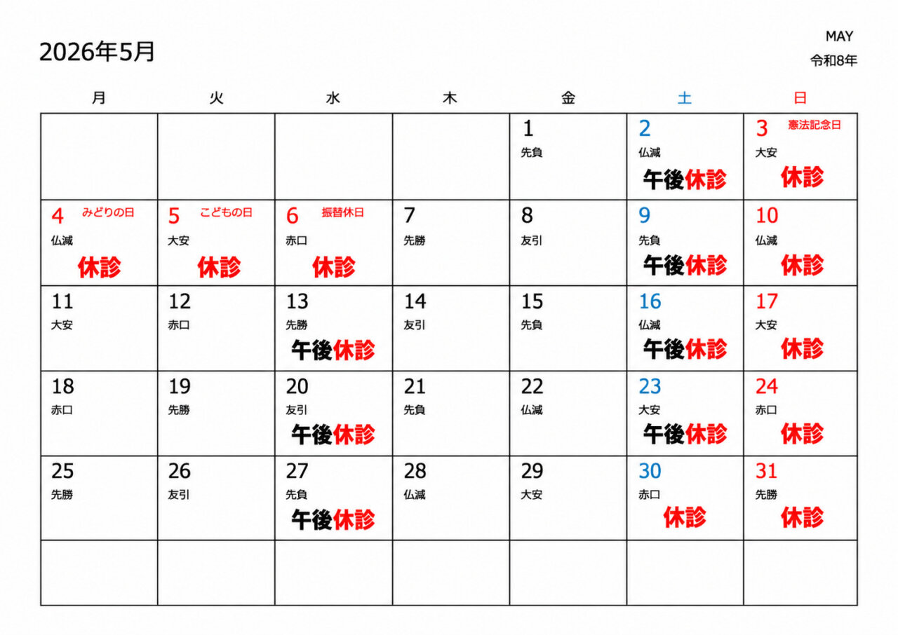 ・5月の休診日のお知らせです。